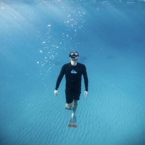 Jetzt halte den Atem an. Bleib ganz ruhig. Auch ohne neue Luft ist in deinen Lungen noch ein Rest – das sogenannte Residualvolumen. Es trägt dich weiter. Vielleicht eine halbe Minute, vielleicht länger. Viele halten es so über eine Minute aus – und trainierte Apnoetaucher sogar bis zu 11 Minuten mit nur einem Atemzug.